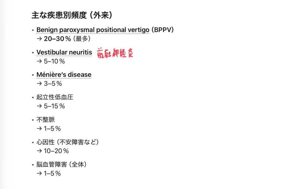 導入が「めまい」だと、まずは「鑑別疾患」+「有病率」を考えます。