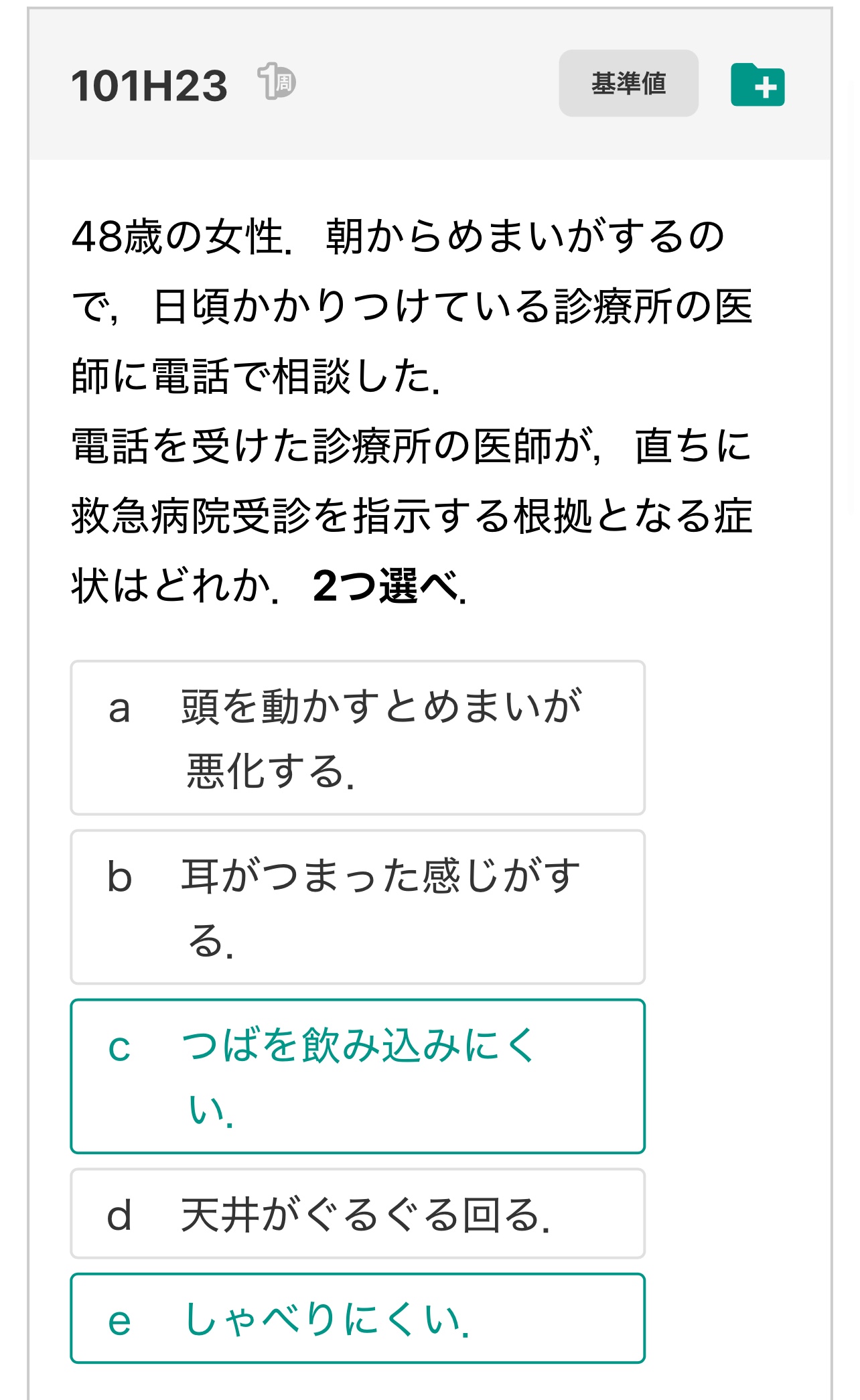 そこで「感度が高い検査」をやるわけです。それが c.唾を飲み込みにくい、e.しゃべりにくい、だったわけです。(←お金がかからない検査ってのも大事)